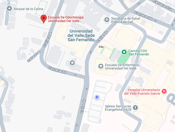 Laboratorio de Habilidades y Destrezas en Odontología Esta dirección de correo electrónico está siendo protegida contra los robots de spam. Necesita tener JavaScript habilitado para poder verlo. A# 122 Carrera 36 #32, Cali, Valle del Cauca Edificio 132. Escuela de Odontología